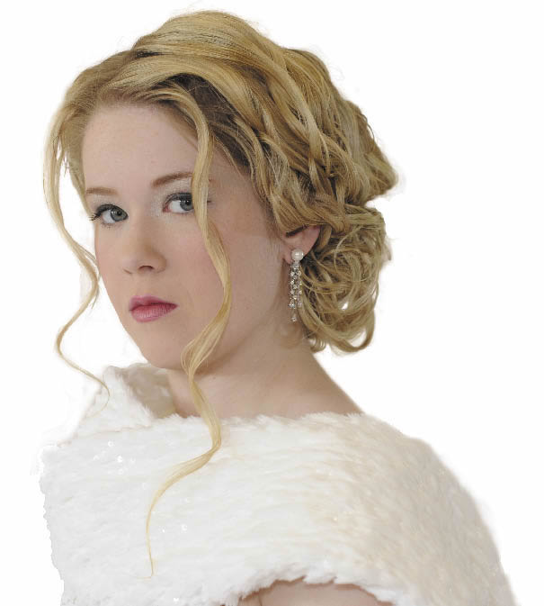 Hair by Malayna at the HairPort, Wasilla. Makeup by Heather of Hello Beautiful!, Palmer. Gown, wrap and jewelry courtesy of Arctic Rose Fine Fashions & Bridal Boutique, Wasilla. Photography by Alaska’s R&R Productions Event Photography.