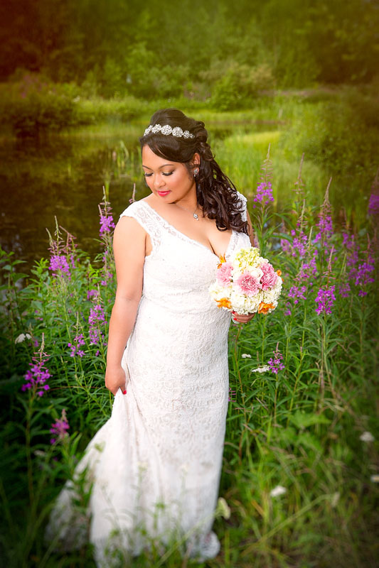 An amazing headpiece of crystals and golden faux flowers by Twigs & Honey (style 240) will make any bride feel regal on her wedding day. $245.