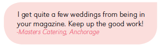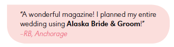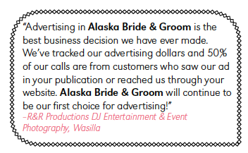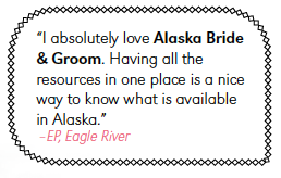 Alaska Bride & Groom is the state’s No. 1 bridal magazine. Nowhere is there a more comprehensive guide for helping brides, grooms and their families plan the wedding of their dreams in Alaska. Now in our 23rd year, we know the local wedding market intimately and are dedicated to delivering inspiring content, talented vendors and advice our readers need to navigate this incredible time in their life.