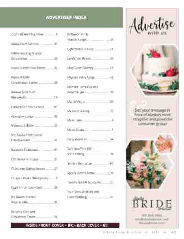 2021 Fall Wedding Show ................. 4 Alaska Event Services ..................... 41