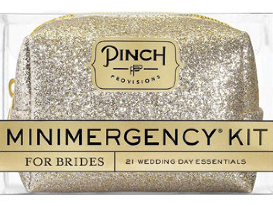 Say “I Do” to disaster relief with the Minimergency Kit for Brides by Pinch Provisions. This kit is chock-full of 21 little essentials to save the big day, including hairspray, safety pins, antacid, breath freshener, mending kit, and the most compact facial and blotting tissues you’ve ever seen. But why stop there; find an emergency kit for everyone, including the bridesmaids and moms of the bride and groom − a great addition to any gift. Visit pinchprovisions.com.