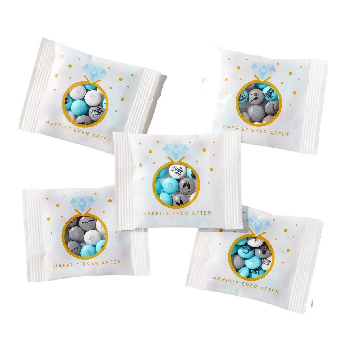 Add lots of sweet sparkle to wedding festivities with unique personalized party favors for the guests to take home. M&M’s Happily Ever After Favor Pack features a sparkly diamond wedding ring cut-out with custom-decorated M&M’s peeking out to share the moment. M&M’s makes it easy to personalize your wedding treats by choosing candy to match your wedding colors (up to 20 different colors). Add personalized messages, clip-art or even a photo for unique party favors to celebrate the big day. Visit mms.com.